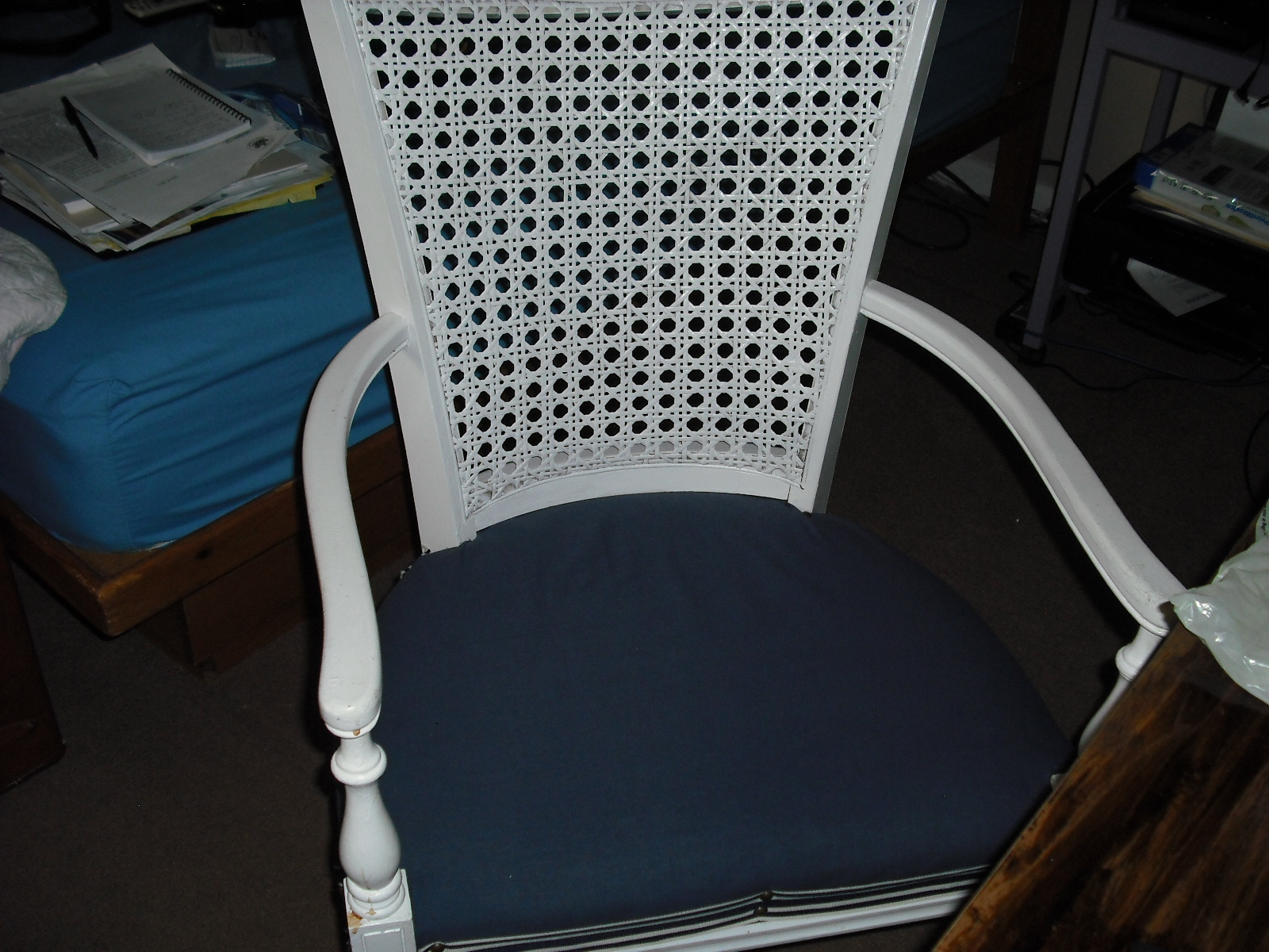 Almost every chair in my home is painted and recovered with classic traditional fabrics, based on photos can you tell what my favorites colors are; you guessed it blue and white. I like to mix different prints and solids but in same color scheme. Recovering a chair is really easy if you have the right tools, which are a philip screw driver, a staplegun, and scissors. Cut the fabric according to the size of the seat, leave about 3 inches on each side to fold under the chair seat and to staple fabric. Place chair seat face down on top of fabric on a solid surface. Pull fabric over edge of the chair sides, work one side at a time, making sure the fabric is nice and tight. When reaching the corners, fold corners tightly and cut off excess fabric to get a clean corner.