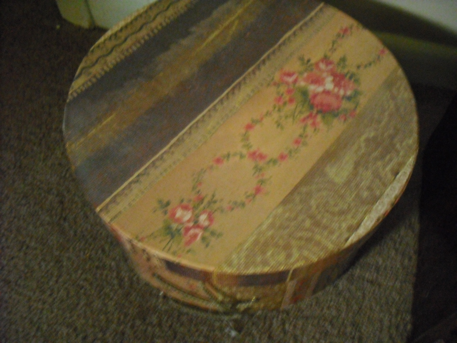 I purchased this hat box at a department store in NYC named century 21; in lower Manhattan years ago, I have kept it to keep letters, small computer accessories, and now fabric and sewing notions. Hat boxes are a decorative way to store items neatly in plain sight. It’s versatile and convenient to throw item in box and easily retrieve it, place them in a home office, livingroom corner or bedroom.