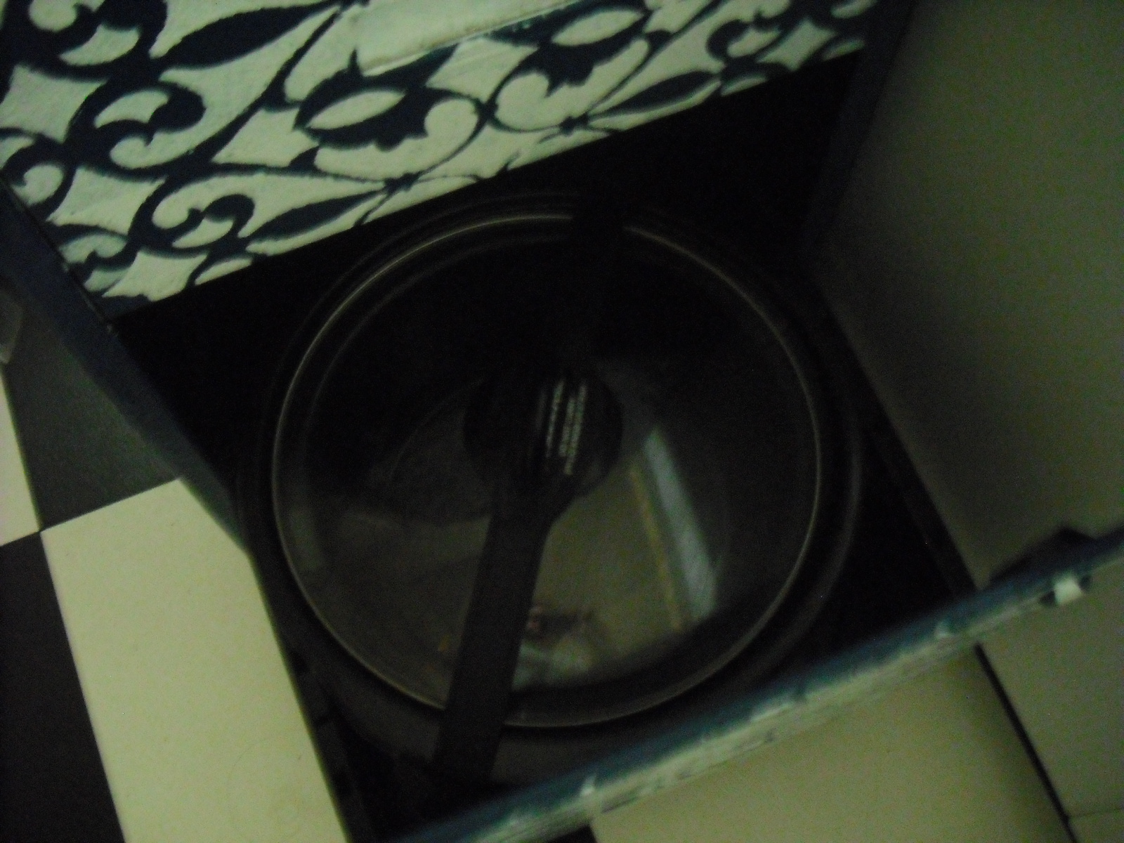 Now I have two file cabinets I don’t use; so I decided to re purpose them into two mobile storage. One will become a small island; the other will be a small rolling tool storage cabinet. I repainted one of the cabinets white and purchased a furniture stencil/wall stencil Moorish design. I painted it blue. I bought some metal castors and added it to the bottom of the cabinet. I placed a large cutting board on the top of the cabinet that is removable. I added a magnetic curtain rod as a small towel holder .I plan to add a power strip cord on the side of the cabinet to add electrical appliances.