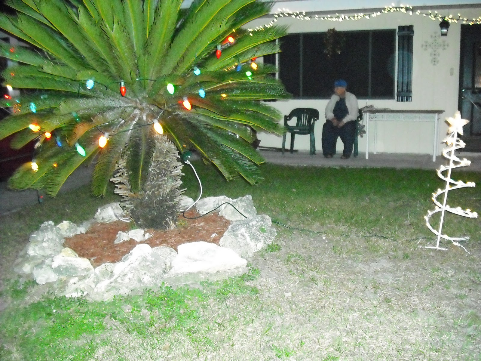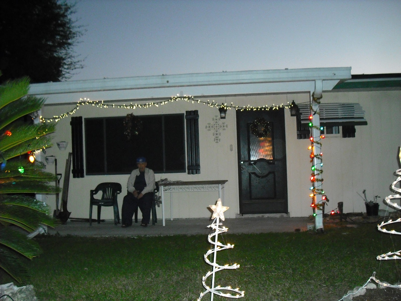 Sitting out on porch during unusually warm holiday season.