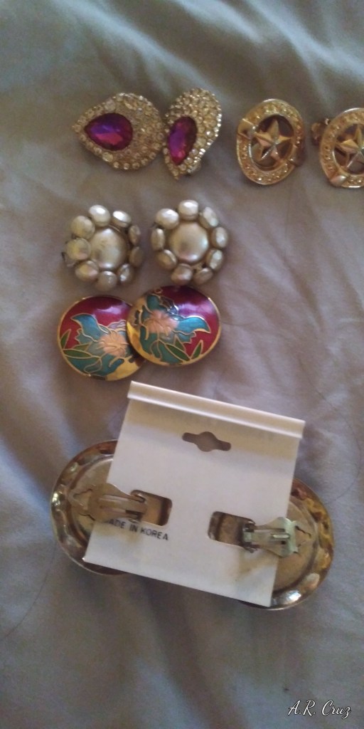I remember in the 80s, I wore heavy dangle earrings when I had pierced ears, and I had a lot of damage to my earlobe. I had to let them close to let them rebuild the skin again. This experience led me to seek out vintage clip earrings from a by gone era. I love my vintage clip earrings collection which I buy on eBay. I like glamourous, funky, eclectic, unique and distinctive designs.